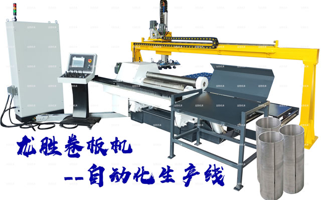 該機優點是板材端部預彎及卷圓可以在同一臺設備上進行。